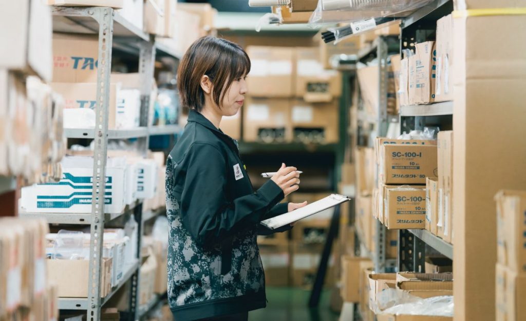 主な仕事として、会社にある倉庫でストックしている在庫品の管理、注文された商品の仕入管理、請求書や帳票の作成・発行、事務業務全般を行っています。工事の過程で資材や部品が追加で必要になるケースはよくあります。特に夏のエアコン関係の工事が増える時期には、現場の忙しさも相まってお客様からの急なニーズが発生することが多いです。シマカでは工事会社様からの発注を受けて資材を手配することに加えて、必要になりやすい商品を常時在庫としてストックしておくことで、不足があった際にもすぐに対応できるような体制を整えています。